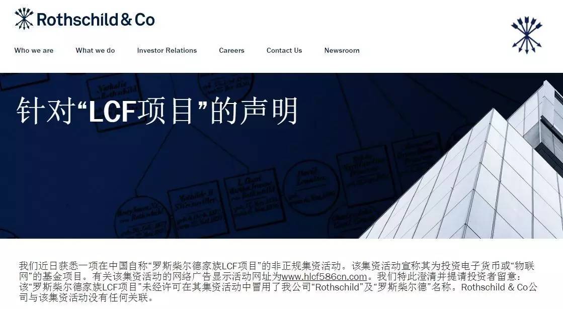 洛希爾集團(tuán)就“羅斯柴爾德家族LCF項(xiàng)目”再次警示中國公眾