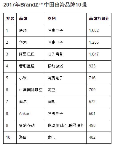 WPP和凱度華通明略聯(lián)手Google發(fā)布了首期“BrandZ中國(guó)出海品牌30強(qiáng)”排行榜及報(bào)告。聯(lián)想以1,682的品牌力得分一馬當(dāng)先,成為最強(qiáng)大的中國(guó)出海品牌。緊隨其后的是,華為(1,256)以及阿里巴巴(1,047)。報(bào)告指出,消費(fèi)者對(duì)中國(guó)產(chǎn)品的負(fù)面認(rèn)知正在下降,互聯(lián)網(wǎng)驅(qū)動(dòng)品牌潛力巨大,中國(guó)品牌行動(dòng)速度往往快于西方品牌。(美通社,2017年1月10日北京)