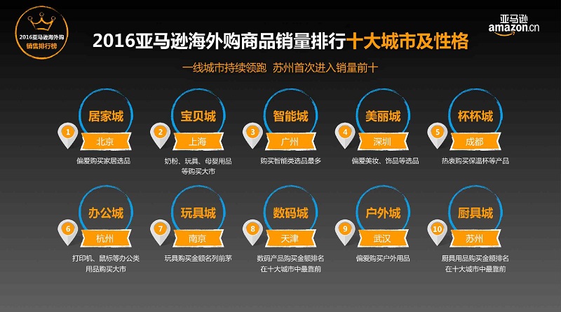報(bào)告基于對(duì)亞馬遜海外購(gòu)海量數(shù)據(jù)的深入解析以及消費(fèi)者行為調(diào)查,總結(jié)出中國(guó)跨境網(wǎng)購(gòu)消費(fèi)的四大特征與趨勢(shì),即跨境網(wǎng)購(gòu)愈發(fā)普及并常態(tài)化、跨境網(wǎng)購(gòu)人群年輕化、跨境網(wǎng)購(gòu)更趨品質(zhì)化和免費(fèi)跨境配送釋放消費(fèi)潛力。從地域分布來看,一線城市依然是領(lǐng)頭羊,且以南方城市為主。服裝、鞋靴是最受中國(guó)消費(fèi)者歡迎的兩大品類。最受中國(guó)消費(fèi)者歡迎的品牌為Calvin Klein。(美通社,2017年1月10日北京)