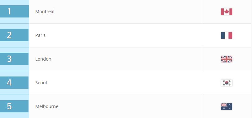 2017 QS最佳大學(xué)城市排名發(fā)布,加拿大蒙特利爾從去年的第七位升至第一,終結(jié)巴黎的五連冠。巴黎掉至第二位,主要是因?yàn)樵谥Ц赌芰拖蛲葍煞矫娴梅窒陆?。倫敦由去年的第五名上升至第三,去年第十名的首爾升至第四,而墨爾本則由去年的第二跌至第五。中國(guó)最好成績(jī)是排在第11位的香港,上海和北京分列第25和30名。(美通社,2017年2月15日倫敦)