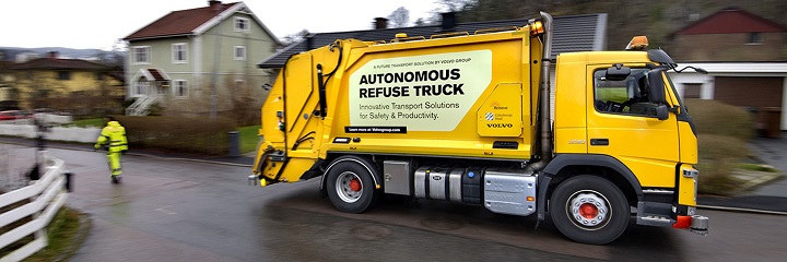 沃爾沃集團(tuán)攜手瑞典廢棄物再利用專業(yè)企業(yè)瑞諾瓦公司(Renova),共同測(cè)試了一輛自動(dòng)駕駛并可在城市環(huán)境中作業(yè)的垃圾清運(yùn)車。該項(xiàng)目旨在探索如何通過自動(dòng)駕駛技術(shù)來提升交通安全、優(yōu)化環(huán)衛(wèi)工人的工作環(huán)境,并降低對(duì)環(huán)境的負(fù)面影響。沃爾沃集團(tuán)的自動(dòng)駕駛垃圾清運(yùn)卡車使得車輛在建筑密集區(qū)的駕駛過程,尤其是倒車環(huán)節(jié)更為安全。車輛傳感器會(huì)持續(xù)監(jiān)控卡車周邊的情況,當(dāng)?shù)缆分型滑F(xiàn)障礙物時(shí),卡車會(huì)立即停下。行車路線由程序預(yù)設(shè),卡車將自動(dòng)從一個(gè)垃圾收集箱駛向下一個(gè)垃圾箱。(美通社,2017年5月17日瑞典 GOTHENBURG)