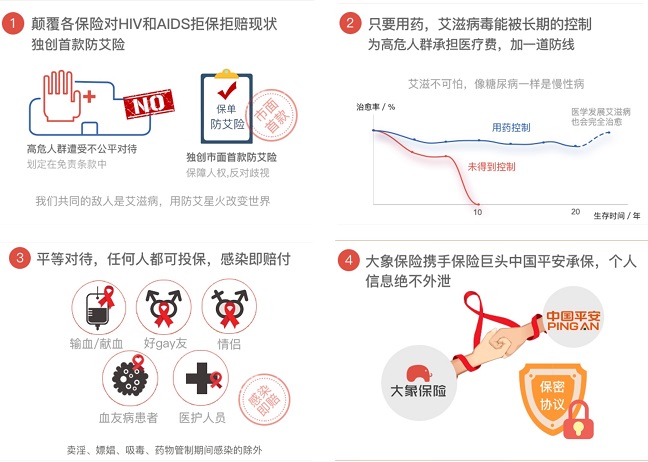 在第三十四個(gè)艾滋病燭光紀(jì)念日來(lái)臨之際,大象保險(xiǎn)攜手中國(guó)平安財(cái)產(chǎn)保險(xiǎn)股份有限公司推出了一款名為“防艾險(xiǎn)”的新險(xiǎn)種。大象保險(xiǎn)相關(guān)負(fù)責(zé)人介紹:“‘防艾險(xiǎn)’是國(guó)內(nèi)保險(xiǎn)業(yè)第一款也是目前唯一一款針對(duì)易感染人群的艾滋病感染專項(xiàng)保障險(xiǎn)種。”“防艾險(xiǎn)”顛覆了各保險(xiǎn)公司對(duì)HIV和AIDS拒保拒賠的現(xiàn)狀。承保后,采用確診即賠付的方式。艾滋病是一種危害性極大的傳染病,潛伏時(shí)間長(zhǎng)、治療方法復(fù)雜、治療周期也很長(zhǎng)。雖然國(guó)家的醫(yī)保政策使部分患者解決了一些費(fèi)用問(wèn)題,但是由于報(bào)銷比例和用藥限制等因素,還是給很多家庭造成了極大的負(fù)擔(dān)。(美通社,2017年5月17日北京)