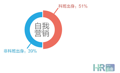 來看看科班與非科班出身的HR在這方面有什么差異。調(diào)研結(jié)果顯示,51%科班出身的HR更注重自我營(yíng)銷類文章,而非科班出身選擇這一項(xiàng)的只有39%。