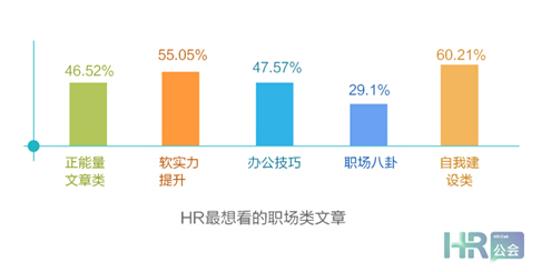誰說職場(chǎng)人只關(guān)心八卦?只有不到30%的受訪者表示對(duì)“休閑八卦類”文章喜好,而且就連入行的HR專員,也只有26.1%的人選了這一項(xiàng)。這是一個(gè)細(xì)思極恐的結(jié)果。試想一下,在一家公司,哪個(gè)部門掌握的八卦最多?人力資源部嘛!所以,HR們對(duì)那些八卦類微信文章根本就不屑一顧好嘛。