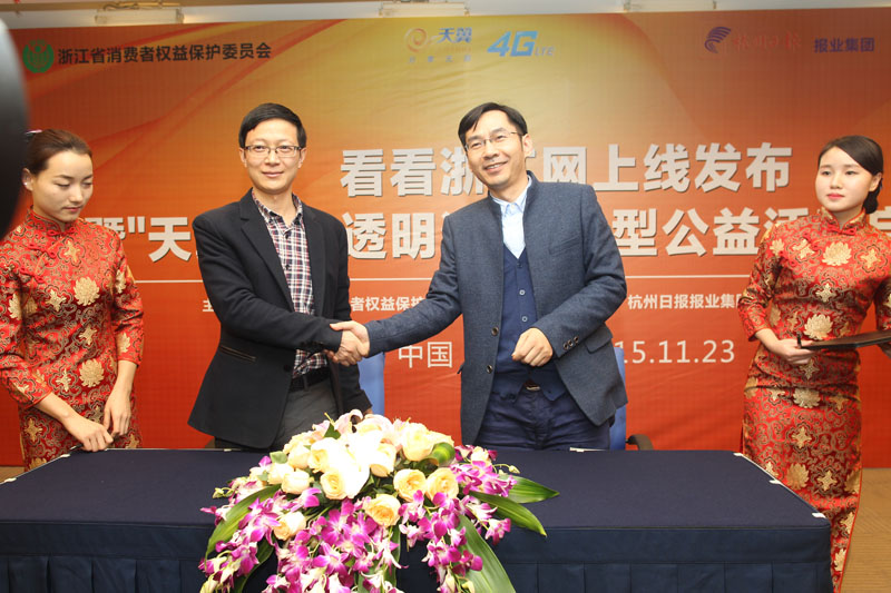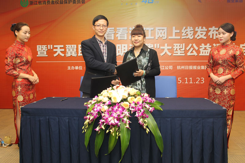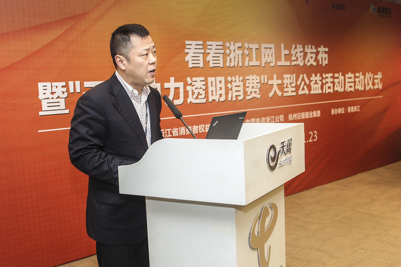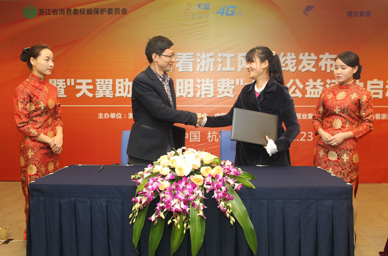 在看看浙江網(wǎng)上線發(fā)布現(xiàn)場,由浙江省消費者權(quán)益保護委員會、中國電信浙江公司和杭州日報報業(yè)集團共同主辦,看看浙江網(wǎng)承辦的“天翼助力透明消費”大型公益活動同時啟動。