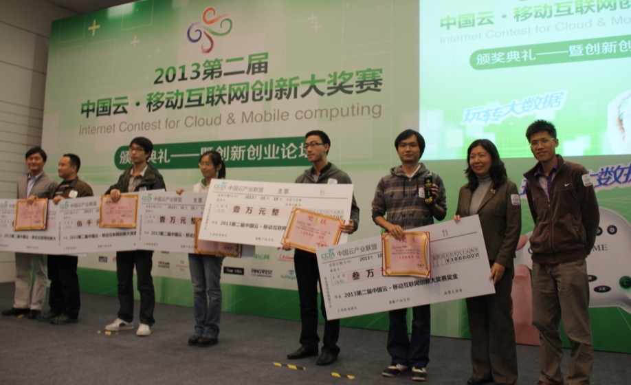 10月18日,中國云·移動(dòng)互聯(lián)網(wǎng)創(chuàng)新大獎(jiǎng)賽 2013(ICOME2013)--“玩轉(zhuǎn)大數(shù)據(jù)”頒獎(jiǎng)典禮在北京航空航天大學(xué)報(bào)告廳舉行,包括布谷云提醒、Bench4Q、WESEE、北航ACT隊(duì)、海馬、香港四方創(chuàng)意、HadoopVision等17支進(jìn)入復(fù)賽團(tuán)隊(duì)成員,中國云產(chǎn)業(yè)聯(lián)盟單位領(lǐng)導(dǎo)以及數(shù)十家主流媒體共同見證了這一時(shí)刻。最終,Ideastar、LCLL、rucasu、海馬、PDL@ NUDT 等參賽團(tuán)隊(duì)分別摘取了商業(yè)創(chuàng)新類和人才技術(shù)類大獎(jiǎng)。