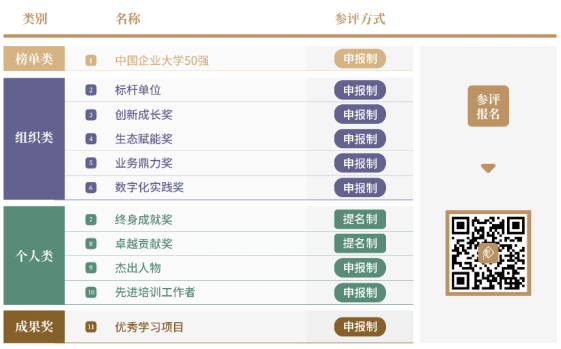 在考察組織的戰(zhàn)略投資、系統(tǒng)儲備、培訓運營、學習設(shè)計、效果評估、績效改進、品牌塑造、數(shù)字化運營等方面的基礎(chǔ)上,重點關(guān)注在人才培養(yǎng)與發(fā)展領(lǐng)域快速成長,具有創(chuàng)新實踐成果的“佼佼者”。
