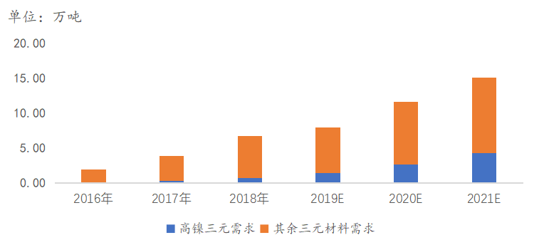 圖:2016-2021年中國(guó)動(dòng)力電池對(duì)高鎳三元的需求量