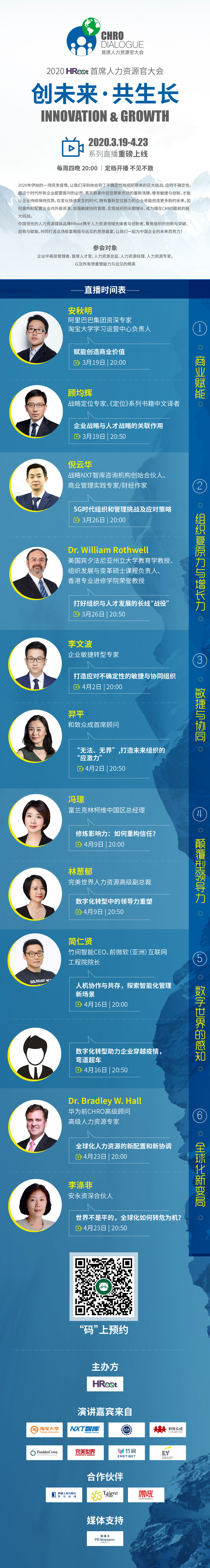本次大會(huì)系列直播以“商業(yè)賦能 · 重構(gòu)資源 · 長(zhǎng)期增長(zhǎng)”為主題,共邀請(qǐng)到了12位重磅演講嘉賓,主要為世界級(jí)的人力資源專家與學(xué)者,以及來(lái)自華為、阿里巴巴、安永、完美世界、富蘭克林柯維、NXT智庫(kù)、竹間智能、和致眾成等知名企業(yè)和領(lǐng)先機(jī)構(gòu)的人力資源高管。