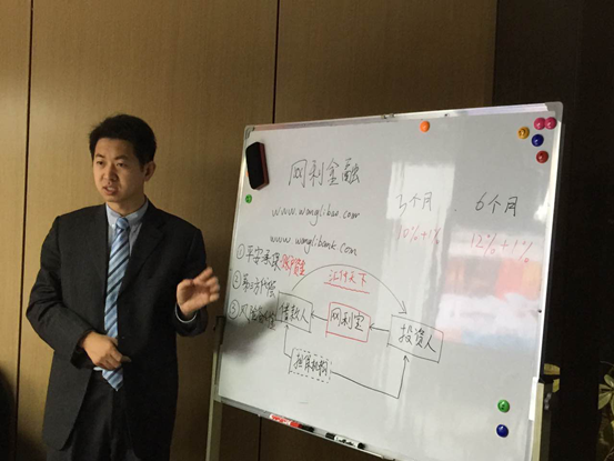 2015年1月24日,網(wǎng)利寶與投資人理財交流會在南京金奧費爾蒙酒店成功舉辦。網(wǎng)利寶南京地區(qū)十余位投資人與公司高管面對面交流。網(wǎng)利金融執(zhí)行總經(jīng)理蔡景鐘、網(wǎng)利寶金融產(chǎn)品總監(jiān)徐海通分別介紹了公司基本情況、發(fā)展歷程、產(chǎn)品結構、風控措施、并解答投資者疑問、介紹公司下一步的發(fā)展規(guī)劃。見面會受到投資人的認可;投資人均表示對網(wǎng)利寶的理財產(chǎn)品更加有信心。