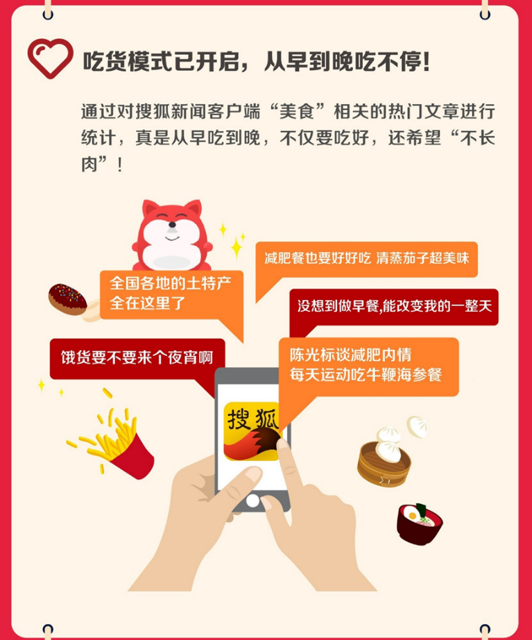 搜狐新聞客戶端將視角圍繞著用戶生活的方方面面,既有面向出行人群的“旅游大數(shù)據(jù)報(bào)告”,同時(shí)也聯(lián)手百度外賣(mài),發(fā)布了面向“吃貨”的“外賣(mài)大數(shù)據(jù)”。
