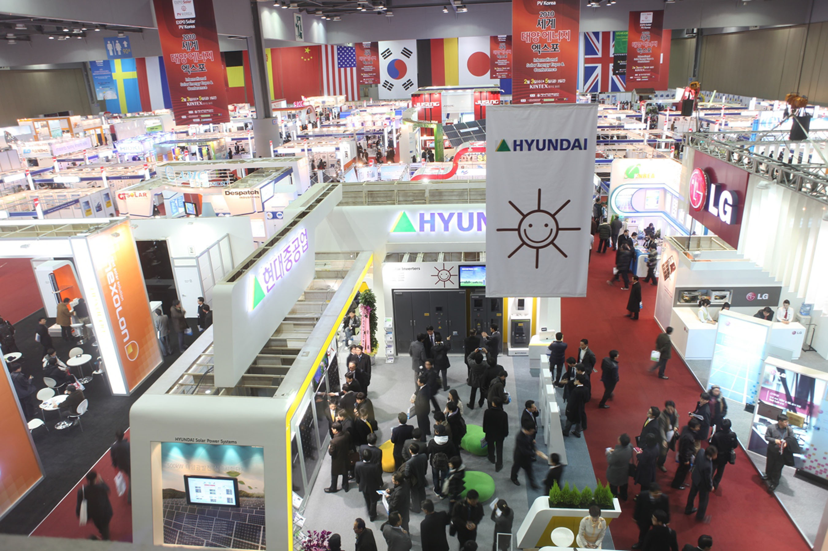 在2011年韓國(guó)首爾世界太陽(yáng)能博覽會(huì)/光伏展上,來(lái)自30個(gè)國(guó)家的逾300家企業(yè)將設(shè)立約1,000個(gè)展位,并展示它們的技術(shù)突破。本地展商中包括諸如現(xiàn)代重工(Hyundai Heavy Industries)、三星電子(Samsung Electronics)和LG電子(LG Electronics)等市場(chǎng)領(lǐng)軍者以及諸如SKC、Daeyeong Metal、SFA、Hanmi Semiconductor、TES和Wooil Hightech等主要廠商。海外展商則包括諸如Schmid(德國(guó))、Roth & Rau(德國(guó))、DKSH(德國(guó))、中盛光電(中國(guó))和Nisshinbo(日本)等世界領(lǐng)先的太陽(yáng)能廠商。