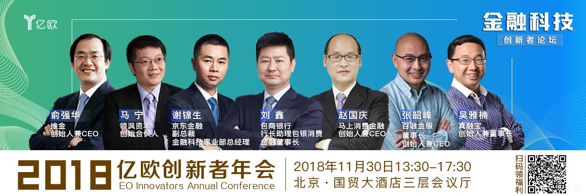 2018年11月30日,北京國貿(mào)大酒店,2018億歐創(chuàng)新者年會【金融科技創(chuàng)新者論壇】火熱報名中:搶票鏈接https://www.iyiou.com/post/ad/id/708