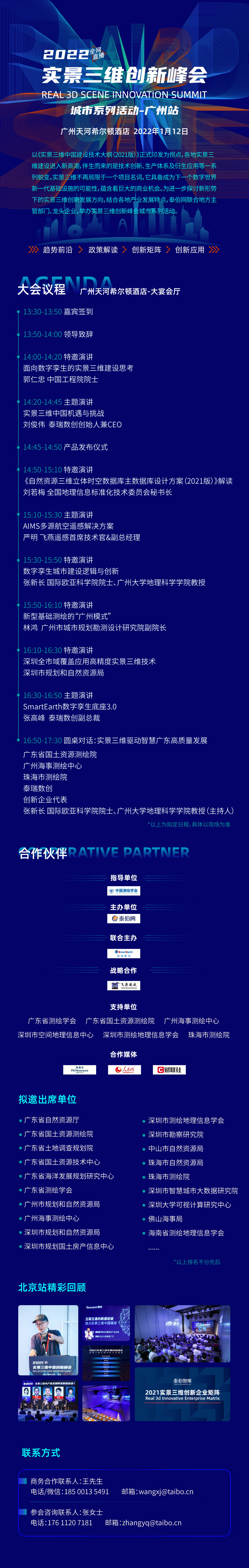 由中國測繪學(xué)會指導(dǎo)、泰伯網(wǎng)主辦、泰瑞數(shù)創(chuàng)聯(lián)合主辦的2021實(shí)景三維創(chuàng)新峰會廣州站,將于2022年1月12日重磅開啟!