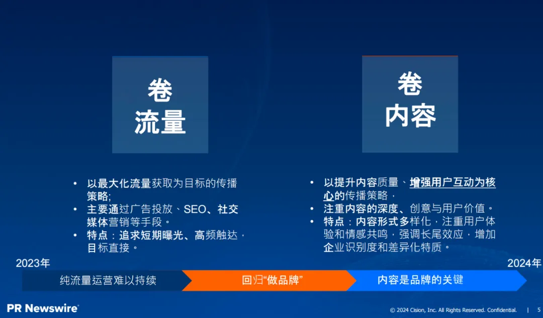 此前企業(yè)的傳播重點(diǎn)在于“卷流量”,即通過外部手段最大化獲取曝光。這包括廣告投放、SEO優(yōu)化和社交媒體營(yíng)銷等方式。然而,獲取流量的成本不斷上升,流量紅利正在逐漸消退,且用戶的注意力被分散在多個(gè)平臺(tái)上。