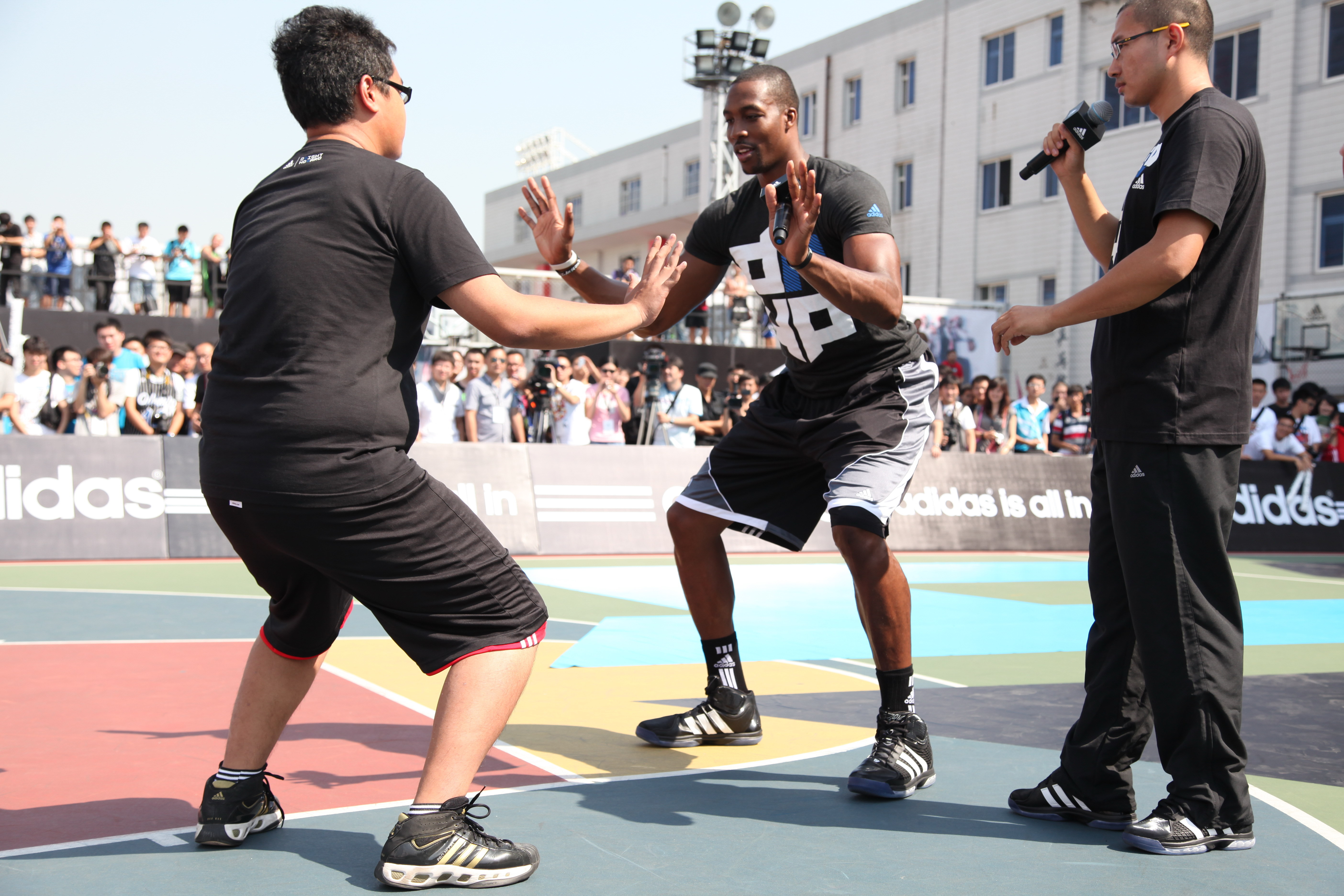 隨后,霍華德開始向球迷分享他的籃球故事,傳遞其如何全傾全力變壯變強(qiáng)的訓(xùn)練之道。這位三屆NBA年度防守球員,也向球迷介紹他對(duì)于此次“霍華德3D中國(guó)行”中“3D”一詞的理解,代表著他曾三次獲得年度防守球員 (DEFENSE PLAYER OF YEAR)。與此同時(shí),他還向球迷們介紹自己全新專屬戰(zhàn)靴——adipower Howard。