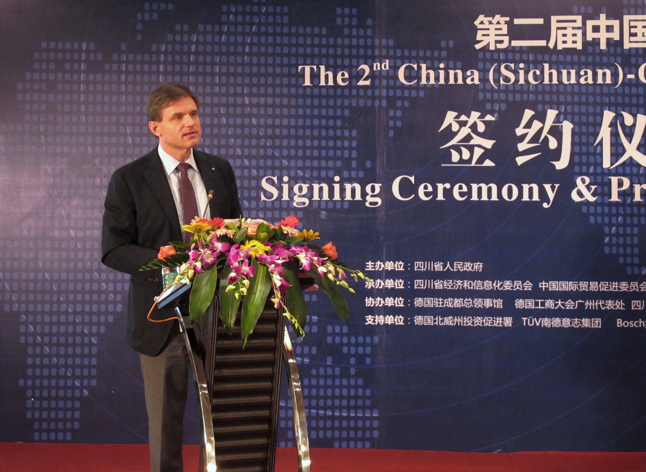 四川憑借其豐富的資源、重要的戰(zhàn)略地位以及巨大的市場潛力,已經(jīng)逐步成為西部經(jīng)濟跨越式發(fā)展的引擎。同時,四川是傳統(tǒng)的重工業(yè)制造基地,擁有良好的工業(yè)基礎和技術累計。在學術方面,更是擁有眾多科研院所和高等學府,每年培養(yǎng)了大量技術人才支持西部的發(fā)展。TUV SUD 大中華集團總裁 & CEO 范華德(Dirk von Wahl)先生在發(fā)言中表示:“通過近距離的交流切磋,一方面使中德企業(yè)間增進了了解,為以后的合作創(chuàng)造更多條件;另一方面,TUV SUD 很樂意把集團在德國及歐洲相關領域的一些經(jīng)驗引進到這個區(qū)域,作為西部地區(qū)企業(yè)拉近與國際市場的紐帶與橋梁。”