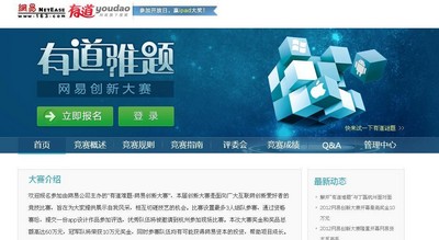 “有道難題——2010網(wǎng)易編程挑戰(zhàn)賽”是由網(wǎng)易(Nasdaq:NTES)主辦的國(guó)內(nèi)較高水平的程序競(jìng)賽,旨在為中國(guó)廣大計(jì)算機(jī)編程愛(ài)好者提供一個(gè)切磋技藝、溝通交流的平臺(tái),挖掘并嘉獎(jiǎng)優(yōu)秀的編程人才。本次大賽共有來(lái)自全國(guó)各地21,000名選手報(bào)名參加,刷新了國(guó)內(nèi)同類賽事參賽人數(shù)的較高紀(jì)錄。經(jīng)過(guò)資格賽、在線賽和晉級(jí)賽的輪番比拼后,最終選定50名選手進(jìn)入了總決賽的角逐。