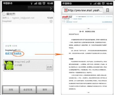 據(jù)產(chǎn)品人員介紹,用戶激活手機(jī)號碼郵箱后,可通過網(wǎng)頁端和手機(jī)客戶端兩種使用方式,實現(xiàn)用手機(jī)隨時免費收發(fā)郵件,網(wǎng)頁和手機(jī)互通、短信和在線聊天統(tǒng)一管理,電話本網(wǎng)絡(luò)備份等功能。