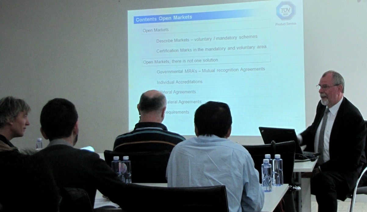 深圳2011年3月14日電 /美通社亞洲/ -- TUV 南德意志集團(tuán)與深圳德國、法國商會(huì)于3月9日在深圳共同舉辦了名為“了解國際市場準(zhǔn)入,擴(kuò)大產(chǎn)品出口”國際認(rèn)證研討會(huì),來自 TUV 南德意志集團(tuán)總部慕尼黑的 Kreinberg 博士前來為商會(huì)會(huì)員講解國際認(rèn)證法規(guī),解讀最新的各國市場安全法規(guī)要求。本次研討會(huì)旨在幫助企業(yè)提升產(chǎn)品質(zhì)量安全觀念,破解各國技術(shù)性貿(mào)易難題。