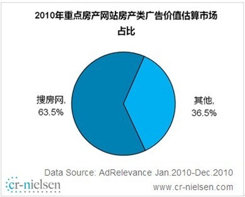 北京2011年2月9日電 /美通社亞洲/ -- CR-Nielsen(尼爾森互聯(lián)網(wǎng)研究)《2010年中國房地產(chǎn)網(wǎng)絡展示廣告市場研究項目報告》(以下簡稱報告)顯示,2010年中國房地產(chǎn)網(wǎng)絡展示廣告市場呈持續(xù)增長態(tài)勢,廣告推廣項目、廣告主數(shù)、創(chuàng)意數(shù)相比2009年均有穩(wěn)健增長。搜房網(wǎng)在這三個核心考核指標中以六成以上的比例高居榜首,其中在房產(chǎn)類廣告主指標上優(yōu)勢顯著,行業(yè)占比高達73.7%。