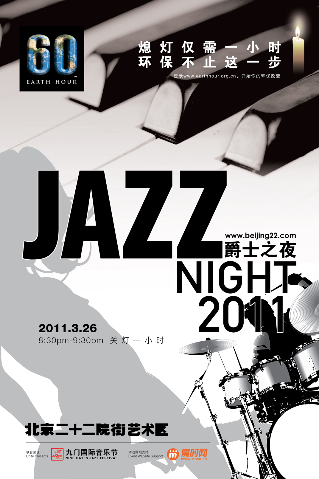 3月26日晚20點(diǎn)30分,隨著二十二院街藝術(shù)區(qū)外景照明燈光的關(guān)閉,在美麗的夜色中,由九門國際音樂節(jié)獨(dú)家傾力呈現(xiàn)的不插電爵士演出拉開了帷幕。由中國爵士鋼琴領(lǐng)軍人夏佳,著名貝斯手張柯,以及優(yōu)秀打擊樂演奏家貝貝組成的夏佳三重奏點(diǎn)燃了到場(chǎng)爵士樂迷們的激情。九門國際音樂節(jié)立志于打造最具國際影響力的音樂節(jié),倡導(dǎo)利用最純粹的音樂激發(fā)人們對(duì)簡(jiǎn)單幸福生活的向往,也為環(huán)保事業(yè)出一份力。演出當(dāng)晚吸引了500余人前來觀看;大家手捧蠟燭,在浪漫的氣氛和悠揚(yáng)的爵士樂中度過了一個(gè)難忘的夜晚。記者在現(xiàn)場(chǎng)采訪到了一些觀眾,大家都表示:現(xiàn)代人的娛樂生活都太依靠電能了,電視、電腦、網(wǎng)絡(luò)、各種家用電器;沒想到在不用電的情況下,也能感受到快樂與溫馨。