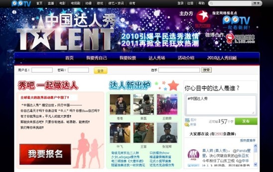 PPTV 網(wǎng)絡(luò)電視作為本次活動(dòng)的網(wǎng)絡(luò)報(bào)名點(diǎn),除了提供報(bào)名平臺(tái)、網(wǎng)絡(luò)直通票等機(jī)會(huì)外,還將首度推出自制節(jié)目 -- 《達(dá)人 E 起秀》,通過(guò)網(wǎng)絡(luò)電視的屏幕首度展現(xiàn)草根達(dá)人的風(fēng)采。而隨著比賽的深入進(jìn)行,PPTV 網(wǎng)絡(luò)電視后續(xù)還將推出“新舊達(dá)人大 PK”特別專題,帶領(lǐng)網(wǎng)友們?nèi)轿稽c(diǎn)評(píng)本屆達(dá)人。