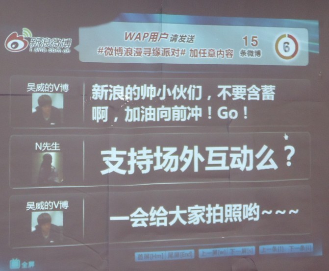 活動(dòng)地點(diǎn)位于朝陽(yáng)門內(nèi)大街京城繁華地段的東單明珠。和煦的陽(yáng)光、溫暖的春風(fēng)首先為這場(chǎng)大企業(yè)聯(lián)誼派對(duì)送上了一個(gè)明媚的好天氣?;顒?dòng)現(xiàn)場(chǎng)更布置了新浪微博大屏幕,為現(xiàn)場(chǎng)微博互動(dòng)做足了準(zhǔn)備?;顒?dòng)從破冰游戲“武松打虎”開始,讓珍愛網(wǎng)的優(yōu)質(zhì)男女與新浪微博熱情的員工迅速打破陌生的尷尬,進(jìn)入狀態(tài),全身心投入這場(chǎng)甜蜜熱烈的年輕人歡聚的派對(duì)中。