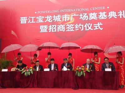 上海2011年4月18日電 /美通社亞洲/ -- 4月17日上午,在一場(chǎng)春雨中迎來了晉江寶龍城市廣場(chǎng)的奠基典禮暨簽約儀式。中共晉江市委書記尤猛軍、中共晉江市委副書記、市長(zhǎng)劉文儒先生、寶龍集團(tuán)董事局主席總裁許健康先生、寶龍集團(tuán)執(zhí)行總裁許華芳先生等參加了典禮。中共晉江市委副書記曾清金、寶龍董事局主席兼總裁許健康在典禮上發(fā)表了熱情洋溢的致辭?,F(xiàn)場(chǎng)禮炮齊鳴、禮花綻放,獅騰虎躍、鑼鼓喧天,來自社會(huì)各界人士和廣大朋友齊聚一堂,共賀晉江寶龍城市廣場(chǎng)圓滿奠基。