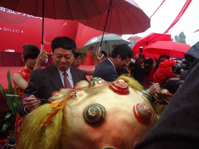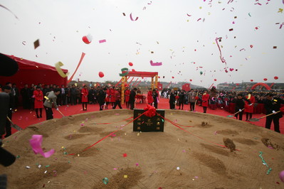 奠基儀式上,寶龍集團(tuán)執(zhí)行總裁許華芳先生與入駐晉江寶龍城市廣場(chǎng)的商家簽約,喜來登酒店、大潤(rùn)發(fā)超市、金逸影院、味千拉面、必勝客、肯德基、麥當(dāng)勞等商家未來都將入駐晉江寶龍城市廣場(chǎng)與晉江市民見面。許健康先生與尤猛軍書記為獅子點(diǎn)睛,預(yù)祝寶龍城市廣場(chǎng)在今后的發(fā)展中風(fēng)調(diào)雨順、繁榮昌盛。在隆重的點(diǎn)睛儀式后,進(jìn)入了活動(dòng)的主題 -- 奠基培土儀式。中共晉江市委書記尤猛軍、市長(zhǎng)劉文儒、泉州政協(xié)副主席許連捷、寶龍集團(tuán)董事局主席許健康等領(lǐng)導(dǎo)嘉賓共同為項(xiàng)目奠基揮楸培土,標(biāo)志著晉江寶龍城市廣場(chǎng)項(xiàng)目正式啟動(dòng)。