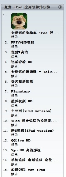 上海2011年5月17日電 /美通社亞洲/ -- 蘋(píng)果 iPhone4、iPad1、iPad2 的相繼推出,使眾多“果粉”趨之若鶩,市場(chǎng)異常火爆。隨著蘋(píng)果平板電腦進(jìn)入高速增長(zhǎng)階段,各類(lèi) APP 應(yīng)用也應(yīng)運(yùn)而生。截止到目前,PPTV 網(wǎng)絡(luò)電視在 APP 應(yīng)用中免費(fèi) iPad 應(yīng)用軟件排行榜位列視頻軟件榜首。