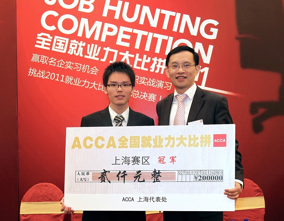 上海2011年5月25日電 /美通社亞洲/ -- 由 ACCA(特許公認(rèn)會計(jì)師公會)主辦的“ACCA 就業(yè)力大比拼”上海賽區(qū)決賽近日落下帷幕。來自復(fù)旦大學(xué)、上海交通大學(xué)、上海財(cái)經(jīng)大學(xué)、浙江大學(xué)等高校的20名大學(xué)生從華東1300位報(bào)名者中脫穎而出進(jìn)入決賽,爭奪名企公認(rèn)的“最具就業(yè)競爭力選手”的殊榮。最終,復(fù)旦大學(xué)的牟竹云、華東師范大學(xué)的侯詒洋和上海財(cái)經(jīng)大學(xué)的胡雪燕分獲冠亞季軍。這三名選手將參加今年6月在廣州舉行的全國總決賽。
