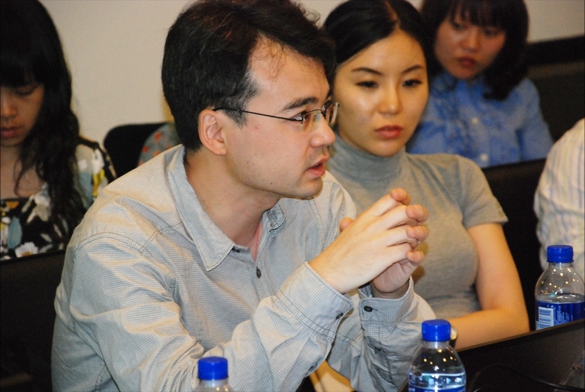 嘉賓記者張京科圍繞《第一財經(jīng)日報》的背景和特征,與其他媒體的區(qū)別,就日常的采訪流程與大家進行了深入的交流。