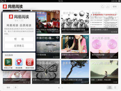 新版網(wǎng)易閱讀新增大圖預(yù)覽樣式設(shè)計和內(nèi)容滾動顯示效果,這使得用戶在使用網(wǎng)易閱讀在 iPad上閱讀時將獲得更為時尚、直觀的體驗。