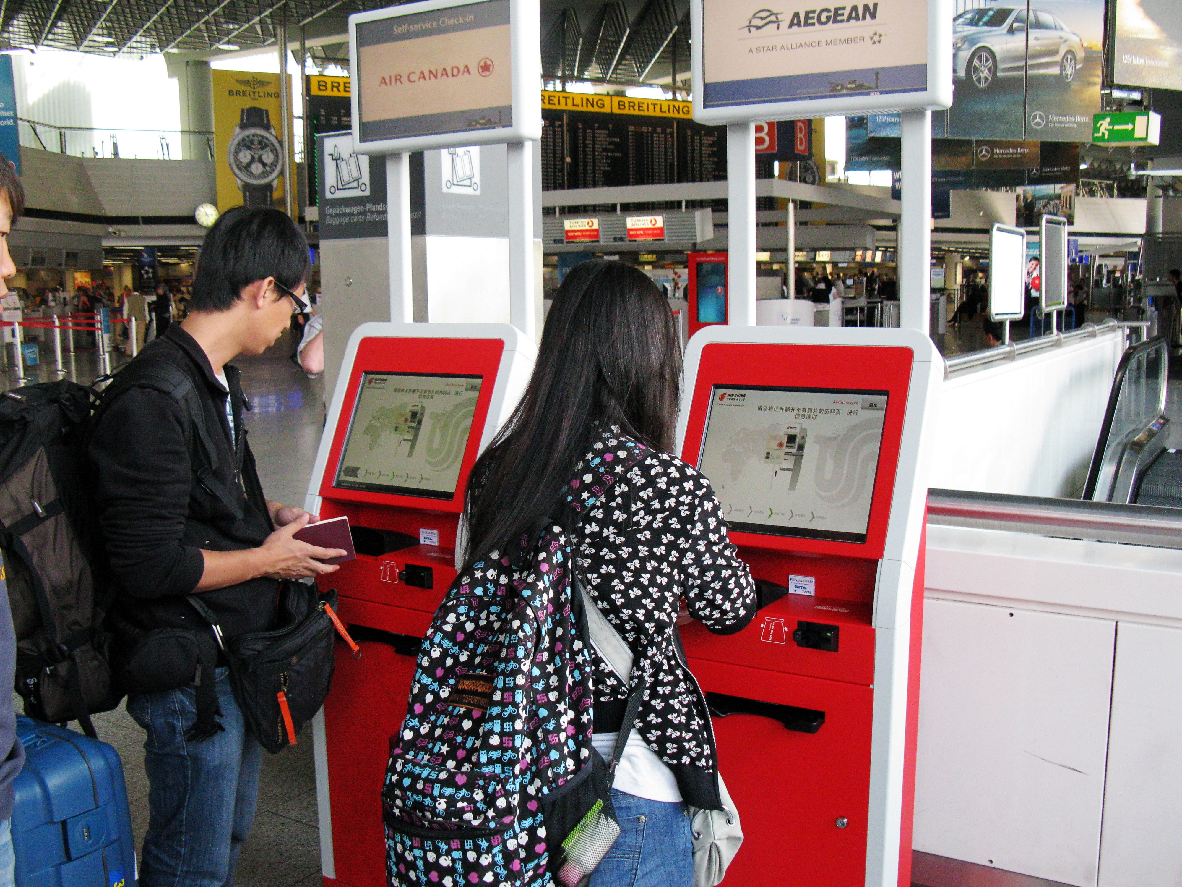 國航依據(jù)國際航協(xié) IATA 的行業(yè)標(biāo)準(zhǔn),以國航整體發(fā)展戰(zhàn)略為指導(dǎo),一直致力于國航自助服務(wù)項目的發(fā)展與推廣。2011年是國航服務(wù)年,為了創(chuàng)建國航特色化的自助服務(wù)機制,給更多旅客創(chuàng)造獨特的服務(wù)體驗。暨2010年東京成田和香港國際機場成功推出機場自助乘機登記服務(wù)后,2011年8月31日,國航又在德國法蘭克福機場成功推出機場自助乘機登記服務(wù)。此次國航在德國法蘭克福國際機場開通的自助乘機登記系統(tǒng)操作頁面美觀,功能完善,支持聯(lián)程航班、多人辦理,流程清晰。支持中、英、繁體中文、德語言版本。旅客可以進(jìn)行自行選擇座位,累積國航知音里程、獲取登機牌等一系列操作。完成辦理后可持登機牌直接通過安檢后登機,無須再耗費在人工柜臺排隊等待服務(wù)的時間,簡化了旅客的出行手續(xù),為旅客提供了便捷的服務(wù)。