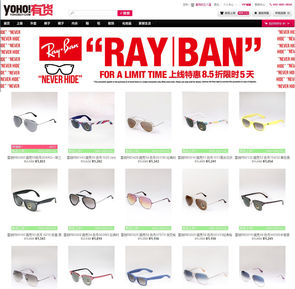 雷朋入駐YOHO!有貨,一站式購物體驗