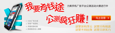 活動(dòng)詳情,請(qǐng)見力美手機(jī)廣告平臺(tái)官網(wǎng):http://www.lmmob.com/ploy.jsp