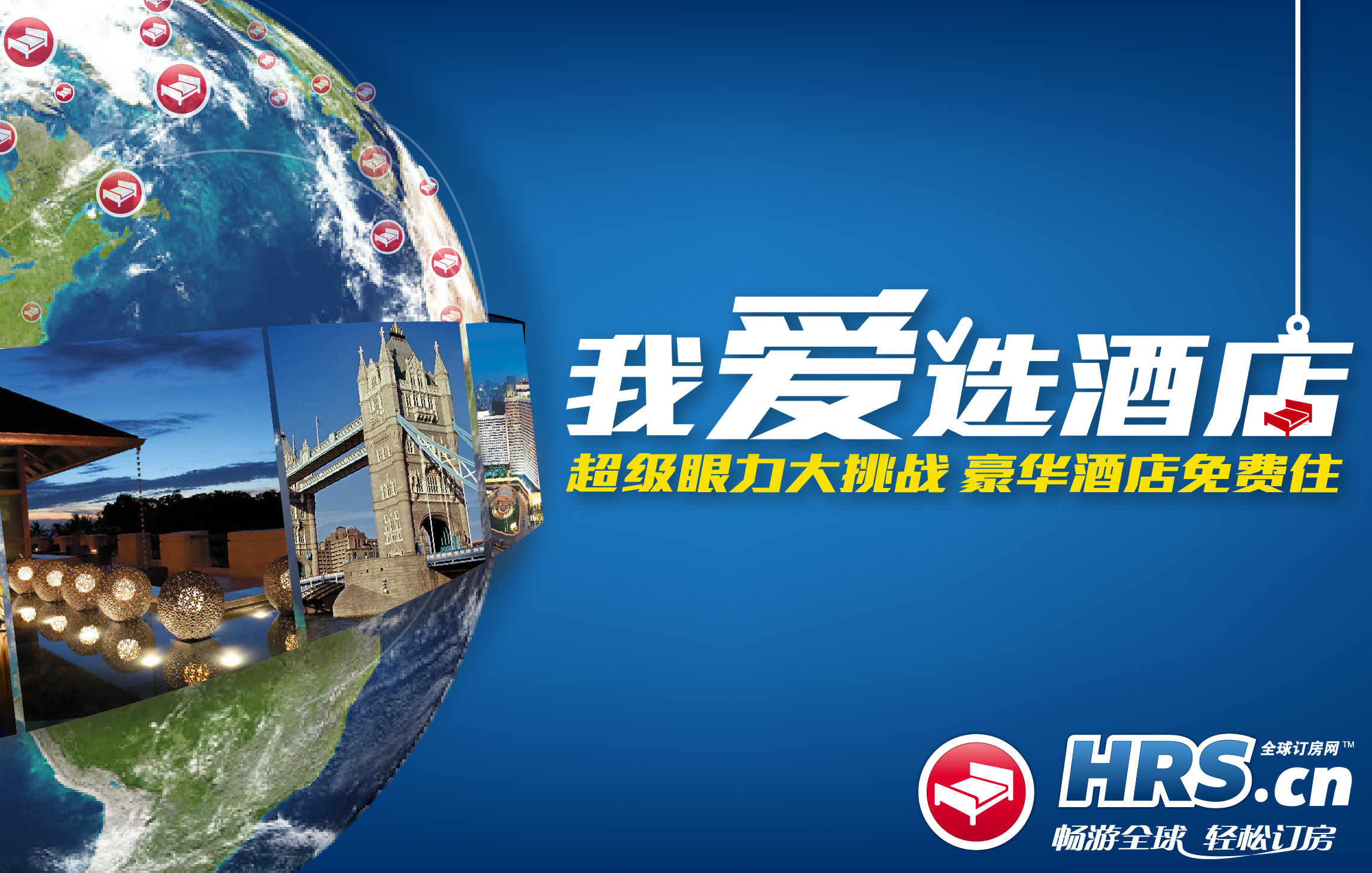今天登場的最新網(wǎng)絡(luò)互動活動名為“我愛選酒店”,整個活動圍繞全球訂房網(wǎng)HRS在180個國家25萬家的酒店資源,全方位地挑戰(zhàn)網(wǎng)友的眼力和對酒店的知曉程度。題目范圍囊括了地理位置、內(nèi)部設(shè)施、酒店主題,應(yīng)有盡有。挑戰(zhàn)者的紀錄將被收錄,在2011年11月28日到12月23日活動期間,登錄活動頁面:campaign.hrs.cn/2011winter,直接參與酒店競猜。前10名紀錄的最終保持者都將贏得入住五星級酒店的獎勵。