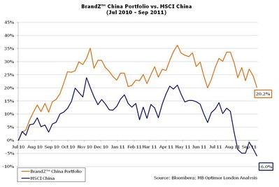 盡管2011年世界經(jīng)濟(jì)仍處在掙扎中,50強(qiáng)品牌的總市值增長16%達(dá)到了3250億美元,略高于中國經(jīng)濟(jì)的5%。