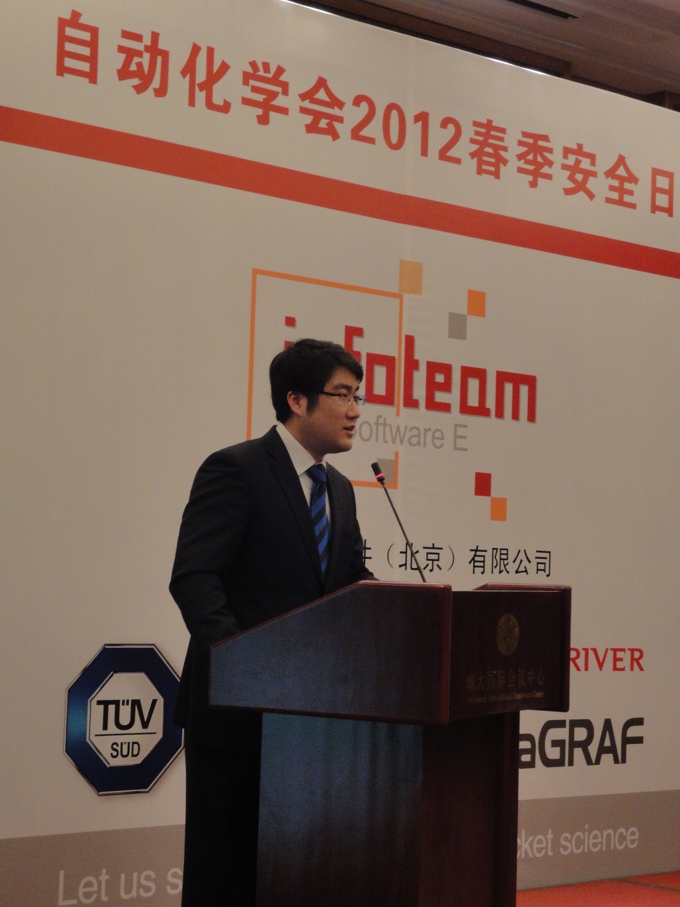 北京2012年3月15日電 /美通社亞洲/ -- 3月15日,TUV 南德意志 (以下簡(jiǎn)稱TUV SUD)大中華集團(tuán)功能安全銷售主管趙欣先生作為發(fā)言嘉賓,應(yīng)邀在北京地大國(guó)際會(huì)議中心參加了由一方梯隊(duì)軟件(北京)有限公司主辦的“2012 春季 安全日”活動(dòng),并就功能安全基礎(chǔ)及相關(guān)標(biāo)準(zhǔn)等問(wèn)題作了活動(dòng)的開(kāi)場(chǎng)發(fā)言。