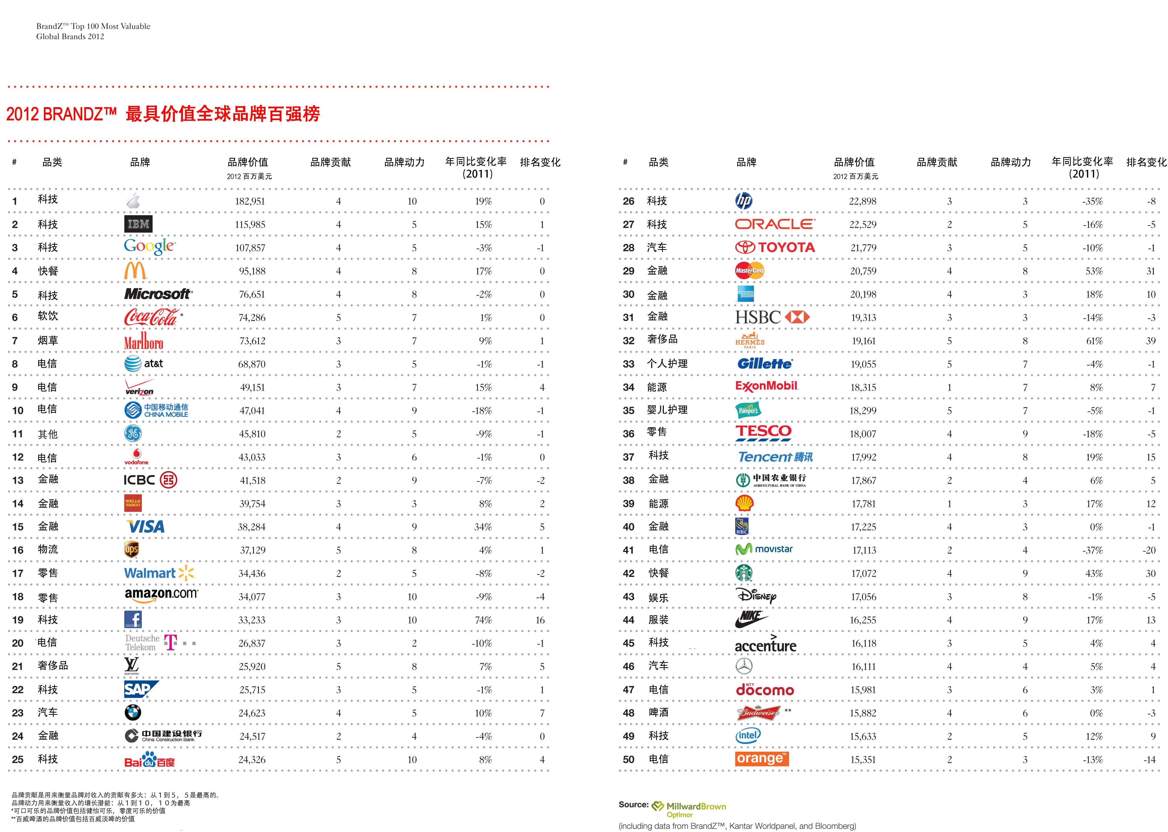 關于BrandZ 最具價值全球品牌百強排行榜