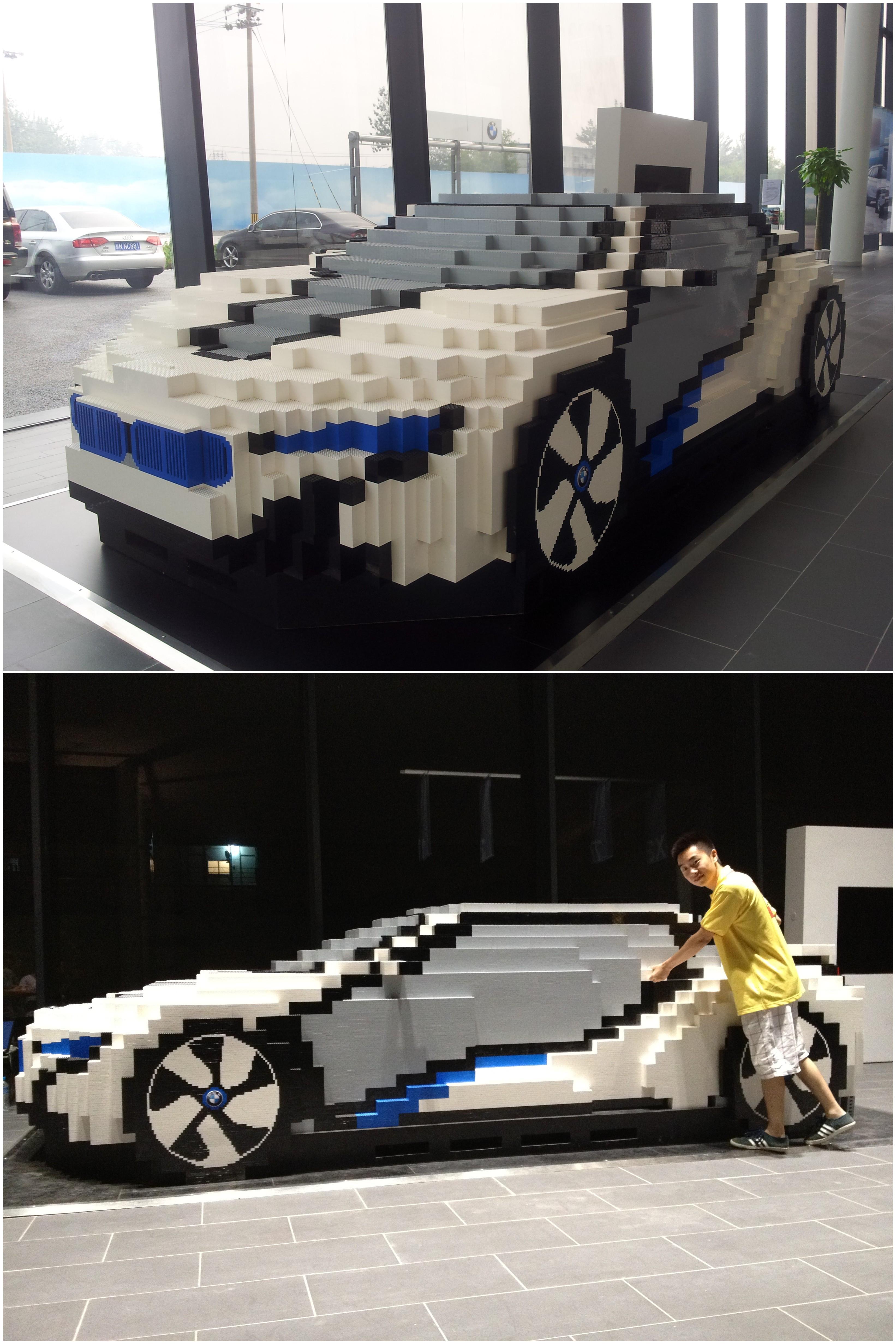 這輛特殊的 BMW i8 概念車是由1名樂高職業(yè)拼砌師與3名助手用將近3周的時間完成的作品?!拔覀兊牟襟E是先把樂高的小顆粒按1:6的比例拼成較大的‘磚塊’,然后再按照丹麥總部發(fā)來的設計圖將‘磚塊’組裝成最終的模型?!边@輛 BMW i8 的“總工程師” -- 樂高中國積木拼砌師沈天成介紹說。由于時間緊迫,顆粒數量預備不足,拿到設計圖后才發(fā)現顆粒不夠?!坝谑俏覀兿然艘惶彀氲臅r間重新設計‘底盤’及內部結構,以較節(jié)省顆粒而又保證能夠支撐整個模型的搭法完成了模型。”最終這輛花費了396,000個樂高基礎顆粒拼砌成的 BMW i8 概念車順利地在國家奧林匹克公園展出。“其實在今年年初于德國慕尼黑舉辦的樂高嘉年華展上,我們的德國同事已經拼砌出一輛等比例大小的 i8 概念車,但由于種種原因,展會后該模型就被立即拆除了,所以呈現在我們眼前的這輛‘車’就成為了全球唯一的一輛等比例樂高積木拼砌的 BMW i8 概念車?!逼雌鰩熒蛱斐勺院赖卣f。