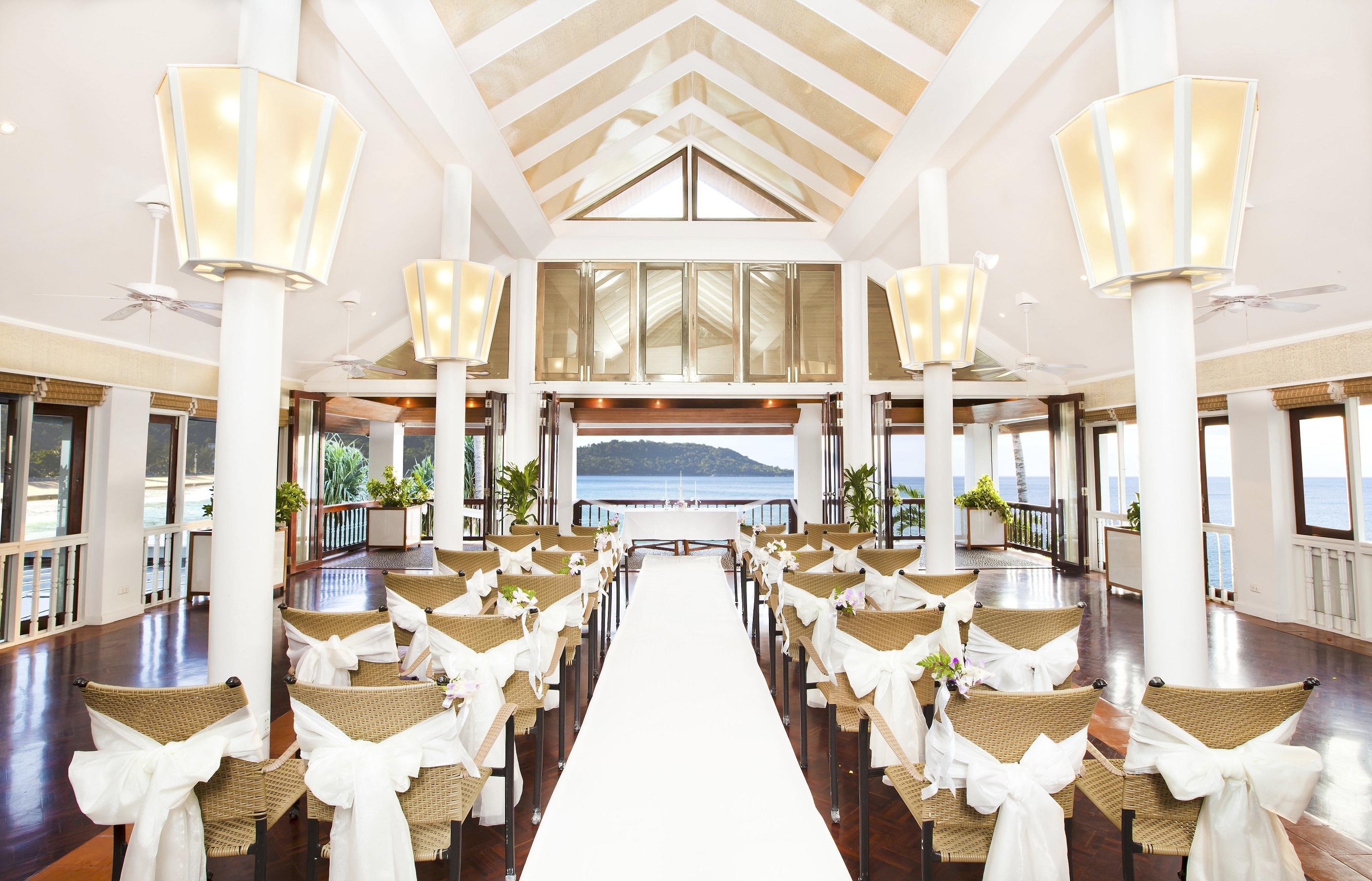 來自泰國水上文化的靈感,獨具泰式風(fēng)格的拉古娜婚禮堂以柱子支撐,幽靜地漂浮在拉古娜湖畔。禮堂內(nèi)飾夢幻而輕快,潔白的格調(diào)給人莊嚴的圣潔感。教堂面向西北方,當由滑動玻璃構(gòu)成的側(cè)面墻壁打開時,充足的陽光灑進室內(nèi),映射出波光粼粼的湖水幻影,營造出一種恍若仙境的感覺。高聳的屋頂,玻璃墻壁,流水背景,繁茂的熱帶花園和咫尺之遙的海灘,都會讓人留下永恒的美麗記憶。