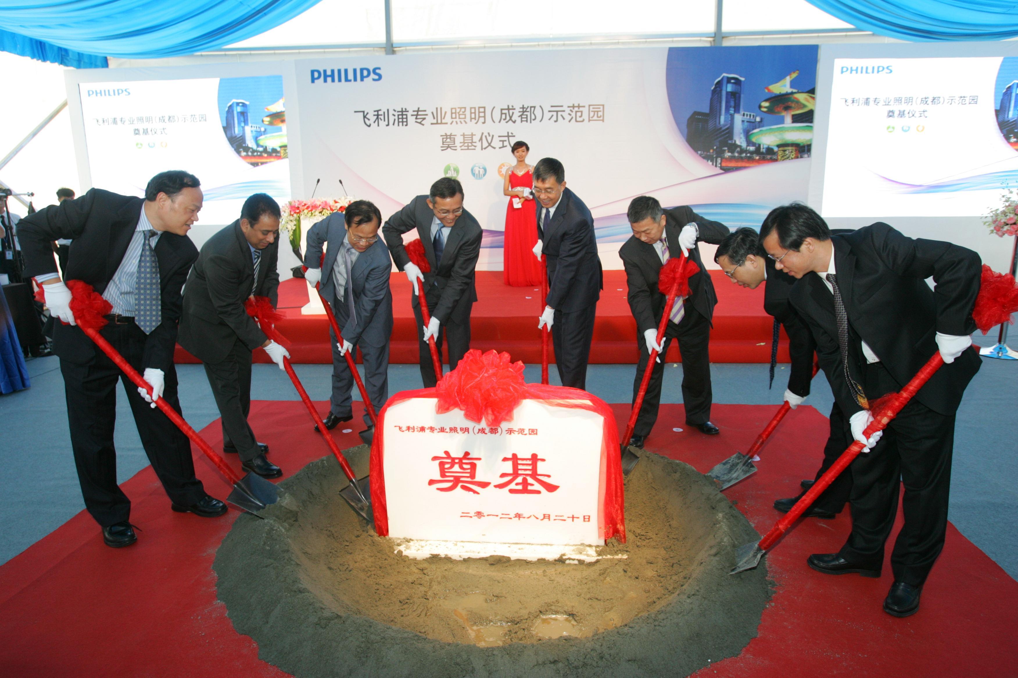 中國成都2012年8月22日電 /美通社亞洲/ -- 近日,飛利浦(中國)投資有限公司在成都高新技術(shù)開發(fā)區(qū)西部園區(qū)舉行了飛利浦專業(yè)照明(成都)示范園奠基儀式,標志著繼2011年6月飛利浦將成都設(shè)立為其在中國的第二個地區(qū)總部,并于2011年底與成都市政府簽訂 LED 戰(zhàn)略合作備忘錄以來,雙方的合作進入了下一個重要階段。成都市委常委、高新區(qū)黨工委書記敬剛,荷蘭駐華大使館經(jīng)濟和商務(wù)參贊蘭杰人(Jeroen Lamers)博士和飛利浦照明事業(yè)部大中華區(qū)總裁梁漢峰,飛利浦集團公共事務(wù)部大中華區(qū)主管佘端志等嘉賓出席了此次活動。