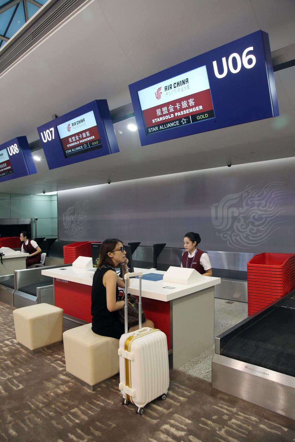 在成都雙流國(guó)際機(jī)場(chǎng)二號(hào)航站樓,國(guó)航可利用的專(zhuān)屬資源有了大幅提升,最明顯的是專(zhuān)屬值機(jī)柜臺(tái)由23個(gè)增長(zhǎng)至60個(gè),值機(jī)柜臺(tái)的增加將有效減少旅客排隊(duì)等候的現(xiàn)象,緩解客流高峰,改善旅客的出行體驗(yàn)。二號(hào)航站樓一共設(shè)置了28條安檢通道,其中16條是面向國(guó)航旅客的專(zhuān)屬通道,安檢通道數(shù)量的增加將有效地緩解高峰期旅客安檢排隊(duì)的情況,節(jié)省旅客的等候時(shí)間。同時(shí),16條國(guó)航專(zhuān)屬安檢通道距離值機(jī)島和停機(jī)位的距離都非常短,旅客們?cè)谵k理完乘機(jī)手續(xù)之后只需步行很短的距離便可到達(dá)安檢通道,而通過(guò)安檢后,更可直接面對(duì)近機(jī)位登機(jī)口,即便是遠(yuǎn)機(jī)位也遠(yuǎn)比一號(hào)航站樓近得多,免去了旅客在乘機(jī)過(guò)程中長(zhǎng)途步行的麻煩。