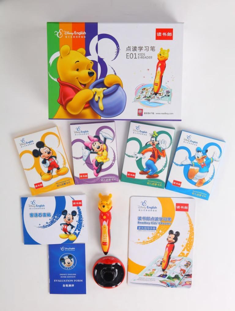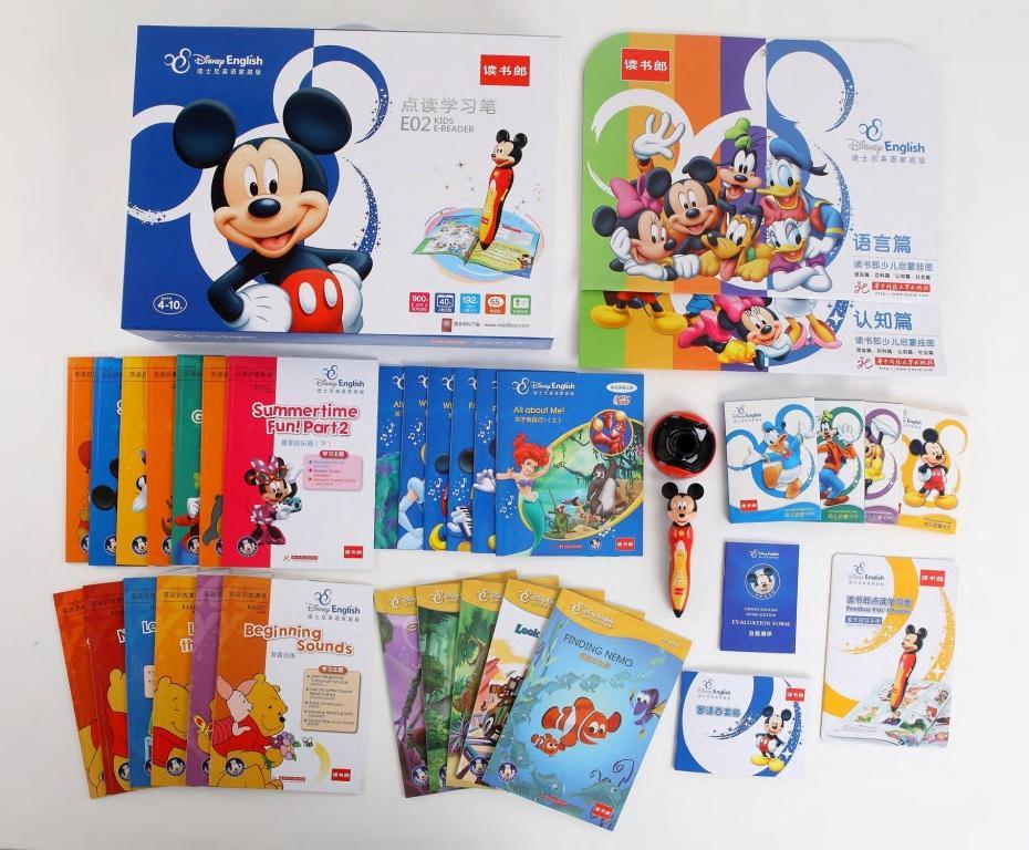 “讀書郎點(diǎn)讀筆”由7個(gè)部分組成,包括1)幼兒啟蒙卡片、2)少兒啟蒙掛圖、3)雙語啟蒙教程、4)英語訓(xùn)練課堂、5)快樂英語兒歌、6)迪士尼趣味故事以及7)少兒彩圖詞典,有三種套裝可供家長選擇,分別是1)啟蒙套裝,2)標(biāo)準(zhǔn)套裝,以及3)綜合套裝,這樣便于家長根據(jù)孩子的年齡選擇難易程度適合的套裝給孩子,讓孩子在家也能享受迪士尼英語中心式的學(xué)習(xí)體驗(yàn)。