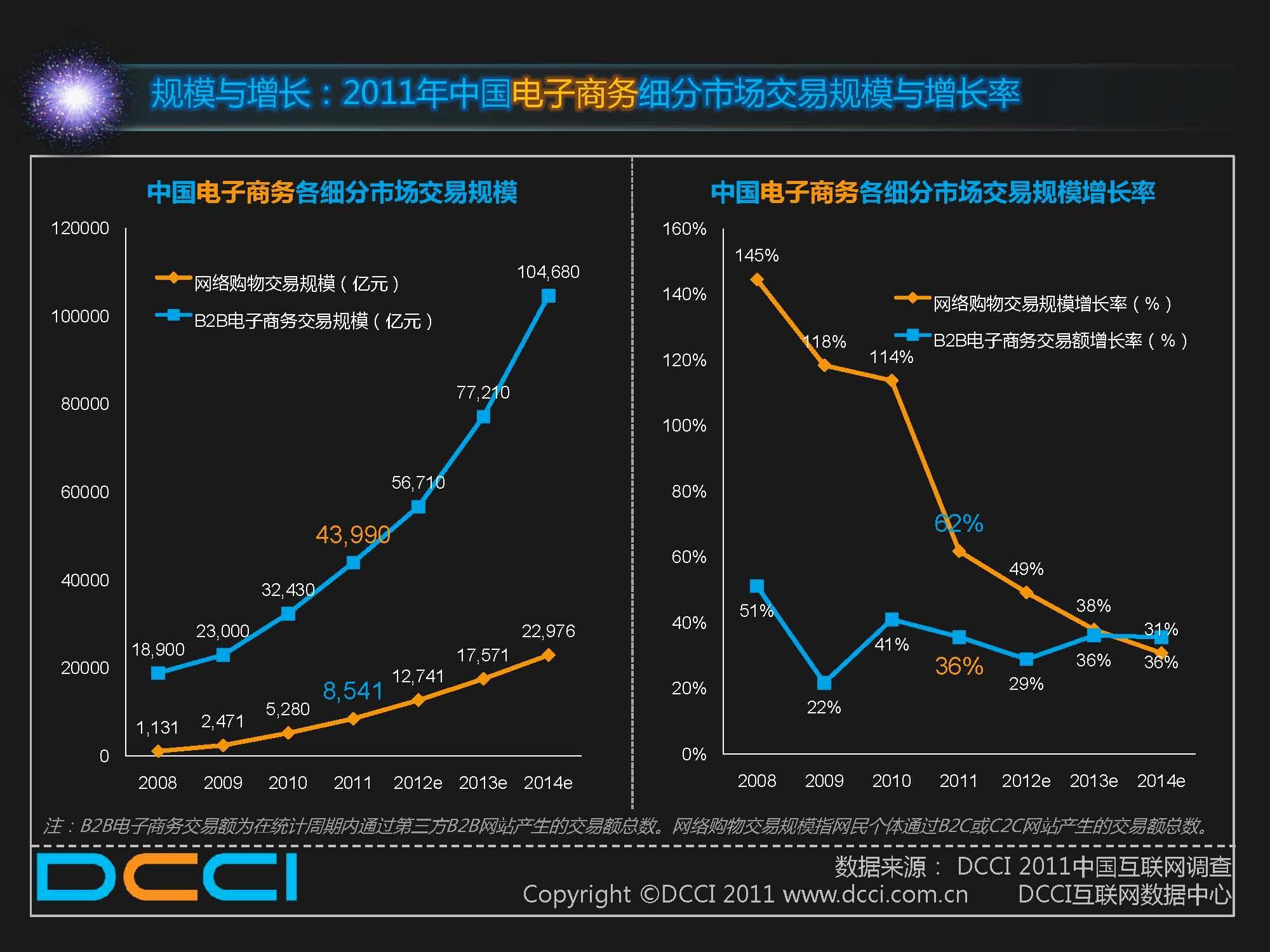 北京2012年10月12日電 /美通社/ -- DCCI 調(diào)查數(shù)據(jù)顯示,2011年中國(guó)網(wǎng)購(gòu)交易規(guī)模達(dá)8541億元,預(yù)計(jì)2012年將達(dá)12741億元?;仡欀袊?guó)B2C電子商務(wù)平臺(tái)發(fā)展歷程:1999年左右,以標(biāo)準(zhǔn)化圖書等商品起家的當(dāng)當(dāng)網(wǎng)、卓越網(wǎng)為發(fā)端;到2003年,淘寶網(wǎng)的成立讓網(wǎng)購(gòu)進(jìn)入大眾視野;而2007年左右,京東商城和凡客誠(chéng)品的成立更是開始帶動(dòng)獨(dú)立B2C熱潮;2010年蘇寧易購(gòu)上線,更是標(biāo)志著電商渠道對(duì)傳統(tǒng)渠道產(chǎn)生了沖擊……互聯(lián)網(wǎng)對(duì)整個(gè)中國(guó)實(shí)體產(chǎn)業(yè)鏈正在發(fā)生改造。而中國(guó)電子商務(wù)在長(zhǎng)時(shí)間的發(fā)展周期中到底處于怎樣的發(fā)展階段?