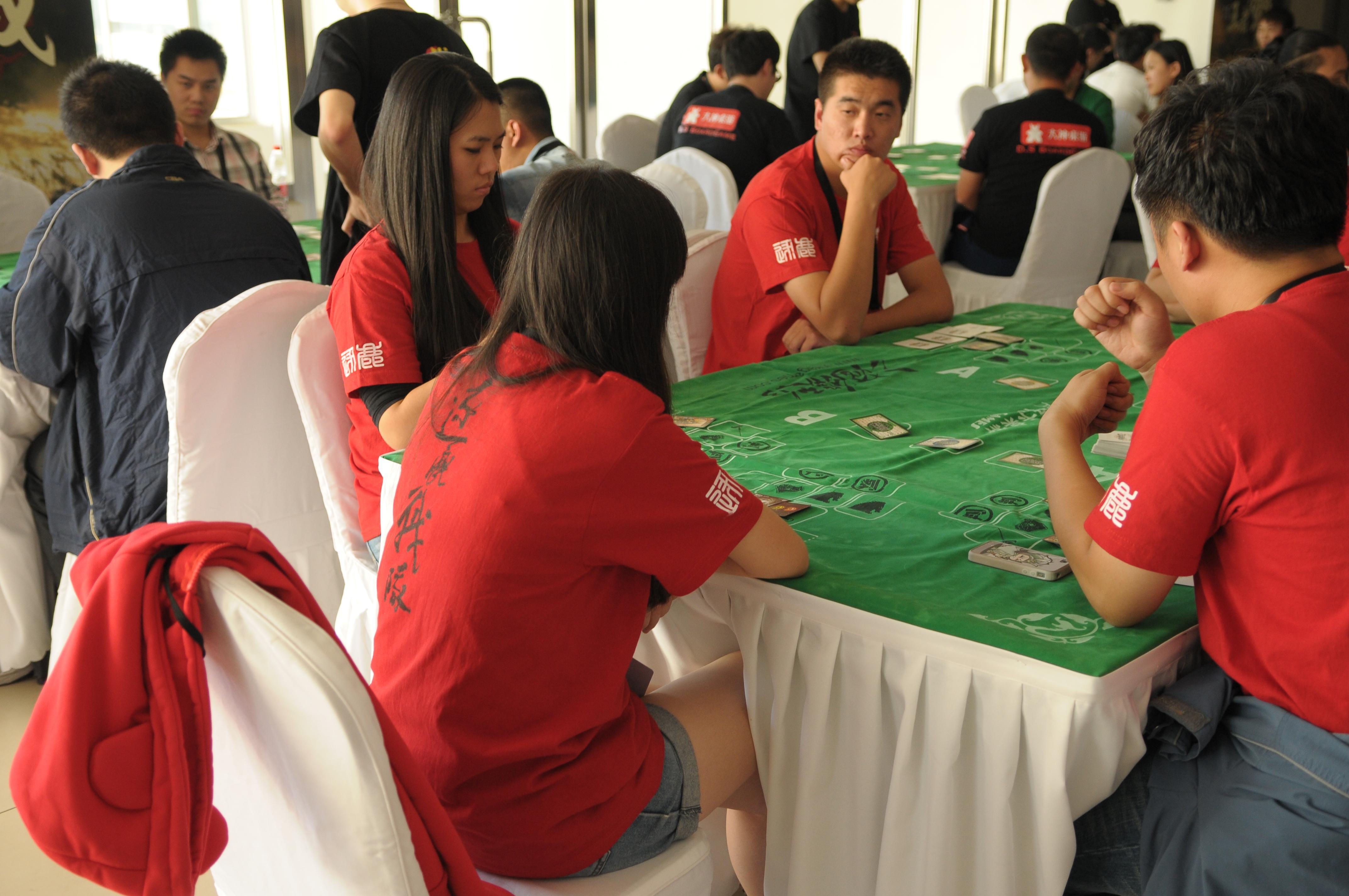 本次比賽中還有了不少亮點,比如北京神之隊?wèi)?zhàn)隊中,有一對情侶搭檔,他們的相識便是通過三國殺,另外,本次比賽的很多戰(zhàn)隊中都有美女選手,她們表示,四年前三國殺剛出現(xiàn)的時候,玩家主要以男生居多,而如今在大學(xué)校園里,已經(jīng)涌現(xiàn)出越來越多的女性高級玩家。