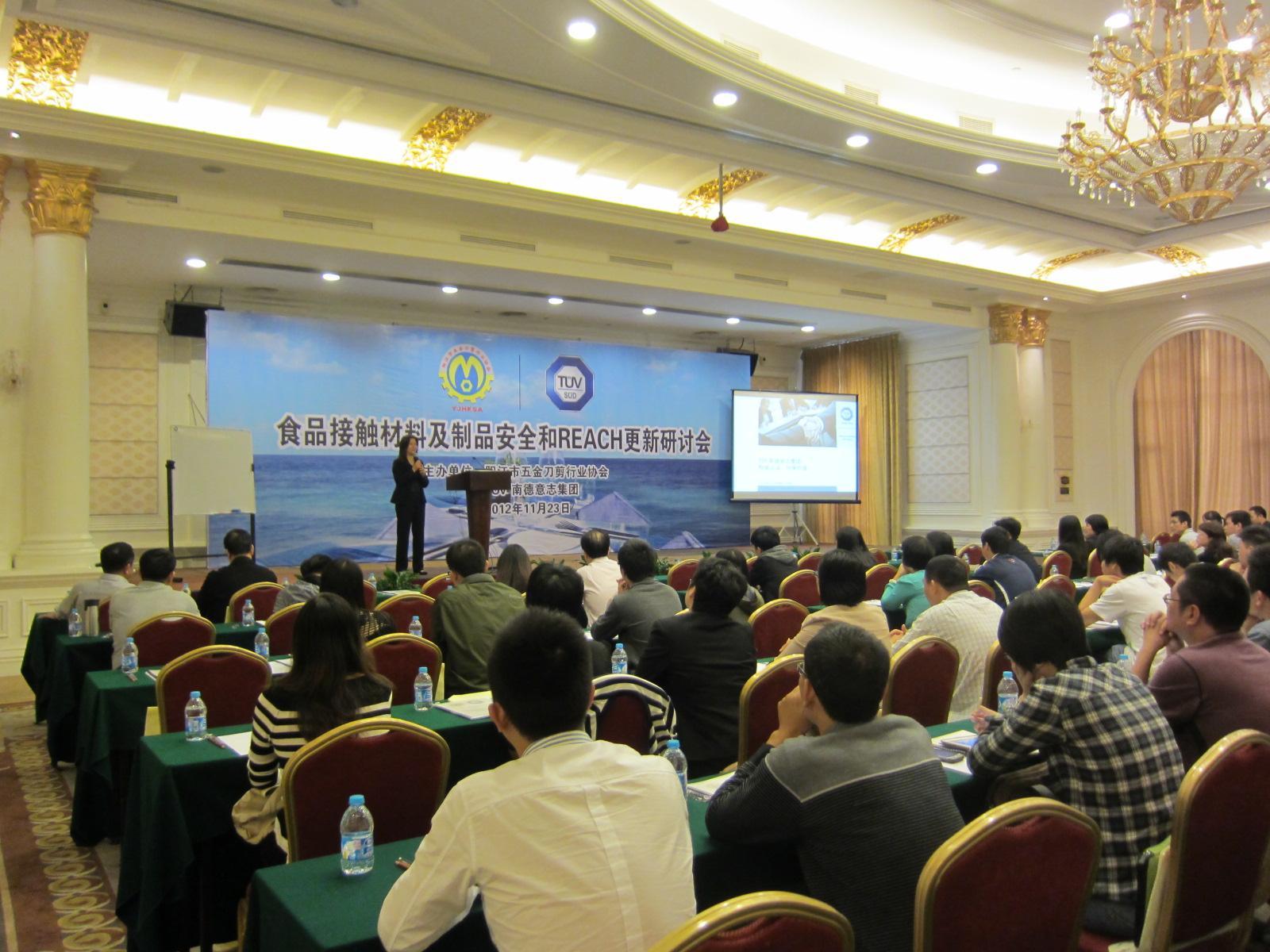 在此背景下,TUV SUD 聯(lián)手陽(yáng)江市五金刀剪行業(yè)協(xié)會(huì)為陽(yáng)江當(dāng)?shù)刂圃炱髽I(yè)舉辦專題研討會(huì),旨在幫助當(dāng)?shù)氐膹S商更加深入了解國(guó)內(nèi)外關(guān)于食品接觸材料制定的各種法規(guī)和標(biāo)準(zhǔn),以及歐盟關(guān)于REACH的最新舉措。TUV SUD 廣州分公司輕工產(chǎn)品部資深項(xiàng)目經(jīng)理鄭曉青先生詳細(xì)講解了食品接觸材料出口美國(guó)、歐盟及各成員國(guó)食品級(jí)材料的法規(guī),尤其是出口到德國(guó)的產(chǎn)品需要符合《德國(guó)食品、日用品與飼料法(LFGB)》。同時(shí),還與企業(yè)代表們共同探討了REACH新增的13種高關(guān)注物質(zhì)(SVHC),分析了在生產(chǎn)過(guò)程中可能引入該13種物質(zhì)的環(huán)節(jié),及處在供應(yīng)鏈上下游企業(yè)各自所應(yīng)承擔(dān)的責(zé)任和義務(wù)等,并為企業(yè)提供了相應(yīng)的管控措施建議。