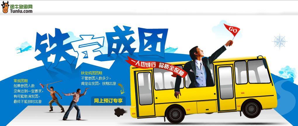 北京和上海2012年12月28日電 /美通社/ -- 相信經(jīng)常出游的朋友,都遭遇過(guò)“人數(shù)不夠未能成團(tuán)”的遺憾。心儀已久的目的地,期盼已久的行程,就這樣失之交臂,不得不說(shuō)非常遺憾?,F(xiàn)在,途牛旅游網(wǎng)推出“鐵定成團(tuán)”線路,“一人也成行,品質(zhì)全保障”,游客采用網(wǎng)上預(yù)訂方式就可享受按時(shí)出游。